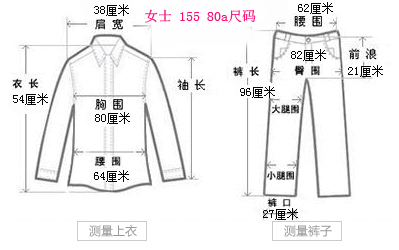 4.女装装的“号”是以cm来表示穿着者高矮的,以5cm为一档,每档的适用范围为该号值加减2cm所得出的范围,如155号,即表示适合于身高在153~157cm的人穿。