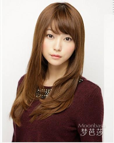 蓬松的中长发发型,与空气感齐刘海搭配,烘托出精致的小脸,凸显出几分甜美气质来,然后染一个棕色的发色,会显得无比的时尚。