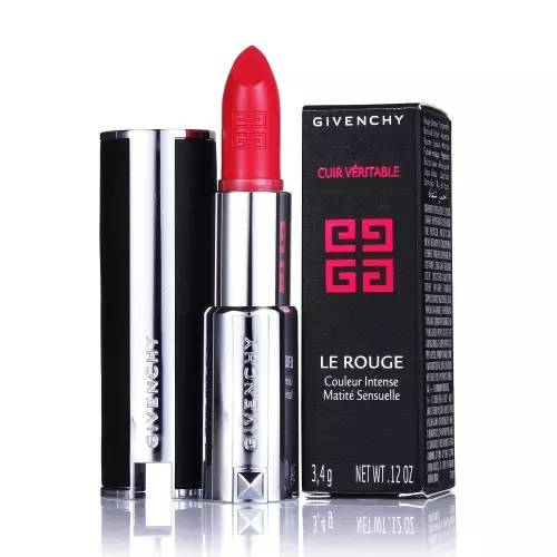 这款唇膏管身印有Givenchy的LOGO。由黑色压纹小羊皮包裹,融合了时尚设计总监Riccardo Tisci的黑色浪漫以及都会时尚设计理念。内管的唇膏膏体赋予人优雅高贵质感。与之前的唇膏较不同的是,纪梵希 (Givenchy) Le Rouge系列中的唇膏,更强调颜色的饱和度及显色效果,主打只要擦一层就能超完美展现色彩张力,并且具有足够的滋润度,让双唇完全不会显得干燥。万年爆皮唇涂抹时也不需要润唇膏打底,上唇效果非常接近唇彩,但是又不像唇彩那么粘腻,遮盖力不错不太挑唇底色。